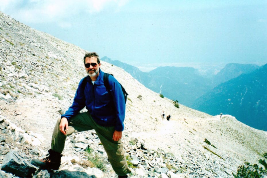 One of my favorites is a hike to Mytikas, the highest of the three peaks on Mt. Olympus in Greece, and supposedly the place where Zeus sat on his throne, tossing down thunderbolts. I’m into safety, so I hired an expert guide. He was a mild-mannered gentleman (as I’ve found many mountaineers are—the mountains make you humble, or dead). He had been on K2 in the Himalayas and recounted a harrowing tale. On that climb, two members of his party died, swept down the mountain in an avalanche. My guide was carried far down the mountain, partly buried, with many bones broken. His surviving buddy had sprinted away, barefoot, and so had avoided the avalanche. His buddy crawled down to find my guide. He found an empty sleeping bag and stuffed my guide into it to survive. He took my guide’s boots, promised to return with help, and left him there overnight. Another avalanche in the middle of the night pushed him farther down the mountain, but didn’t bury him. He told me that he was in fear from large pieces of ice that rained down periodically all night.